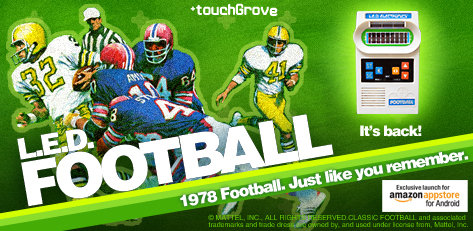 Recall the good ol’ days of playing the 1978 Mattel electronic football game in this retro football flashback. Enjoy the simple and entertaining gameplay that started it all using the latest micro-electonics. Play as the ball carrier; the computer is on defense. Best on higher-end devices. Hustle, hit…never quit!