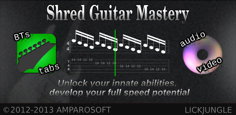Practice, learn, have fun, play along with the backing tracks or improvise. Shred Guitar Mastery aims at making you the best guitar player you can be. Guiding you to develop your full potential, you’ll practice challenging and rewarding licks that you can incorporate into your personal style.
