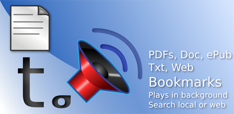 Listen to your office documents, books, articles and research papers while you drive, run, or walk the dog. Proof-read your papers or access ePub books and web images with text. Uses text-to-speech to read txt, pdf and doc formats. Runs in the background, allowing multi-tasking.