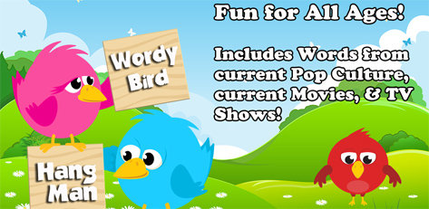 An addictive word game, enjoy this twist on the original HangMan. Pick letters, pay attention to the category, and try to quickly solve the puzzle before all ten birds land on the branch! Contains hundreds of words from over 6 categories like Movies, TV Shows, People, Places, Things, and Food.